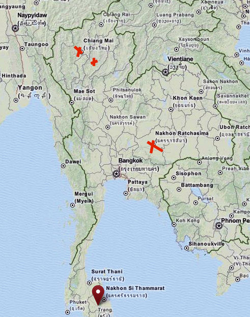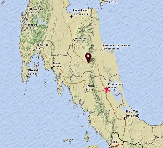 Abb.: Lage von Patthalung (พัทลุง) und Thung Song (ทุ่งสง)