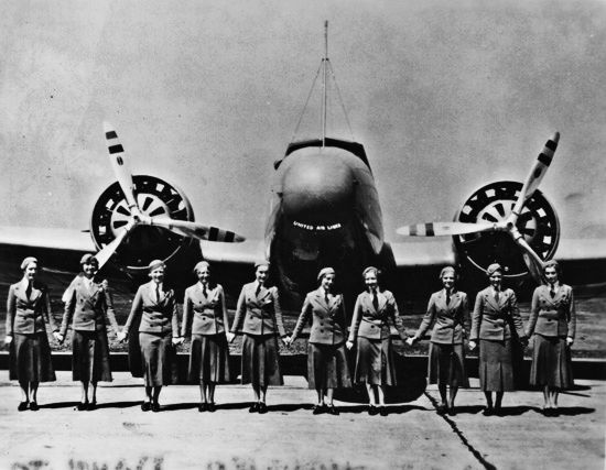 Abb.: Boeing 247 der United Airlines mit Stewardessen