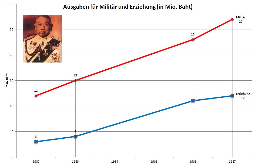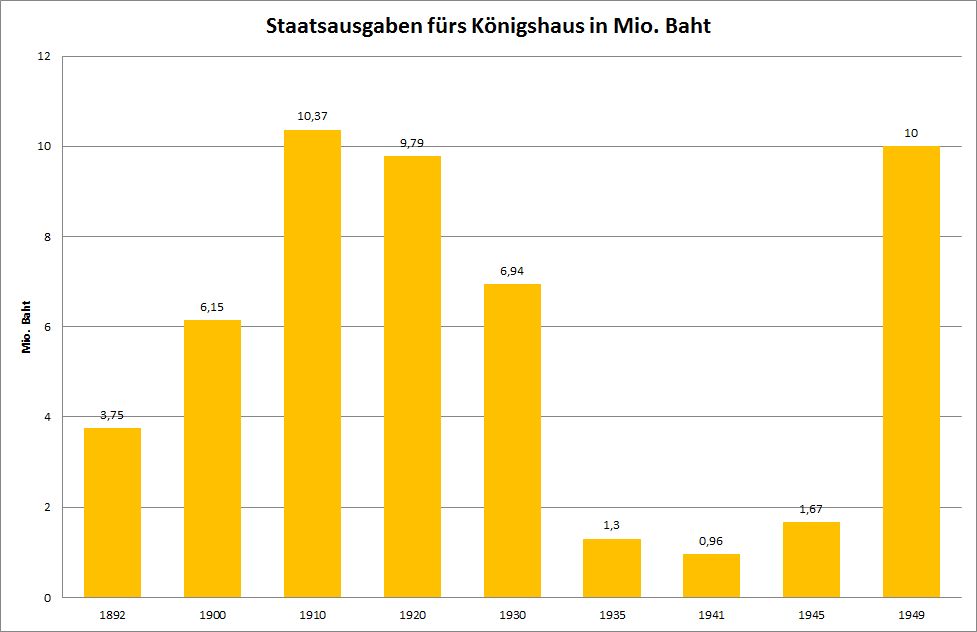 [Datenquelle: Ingram (1971), S. 102]Staatsausgaben fürs Königshaus in Mio. Baht: