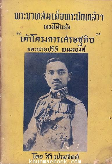 "Dubbed the Samud pokkhao [สมุดปกขาว] (White-covered book), the royal critique followed the well-worn but effective Vajiravudhian style of antiradicalism by castigating Pridi’s Economic Plan as an authoritarian and communistic (three times) copy of the alien Russian Stalinist original (thirty-two times) that would enslave the nation (pen thas) [เป็นทาส] and turn it disastrously un-Thai (eleven times) if ever implemented in full. For example: ] will become thas-ness [slavery] [ความเป็นทาส] because, as has happened in Russia where the same method of insurance was used, the people there have to insure welfare with their freedom and submit to the government as its slaves."Since this is the same as the economic plan used in Russia, as has been said, if our government follows it through, then that will amount to our government helping the Third International [Коммунистический интернационал - Коминтерн, 3-й Интернационал], which aims at changing the world into communism, achieve its aim easily. Because, undoubtedly, for us to carry out this plan will eventually land us in communism for sure. Communism here entails a communist economy, not the so-called government-arranged community of women. Be that as it may, Thailand shall thence become the second communist country in the world after Russia...