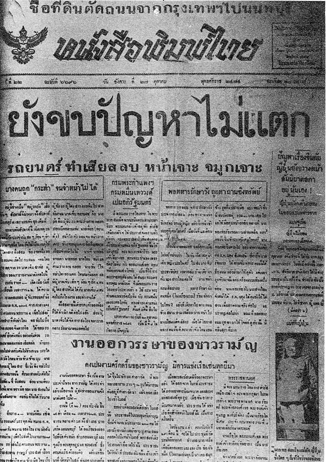 Eine Reihe von Feuersbrünsten in Bangkok (Versicherungswert 2 Mio. Baht) führen dazu, dass erstmals Bauvorschriften erlassen werden.