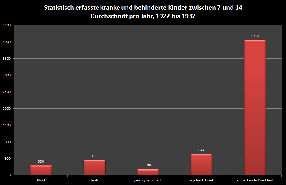Abb.: Statistisch erfasste kranke und behinderte Kinder zwischen 7 und 14, Durchschnitt pro Jahr, 1922 bis 1932