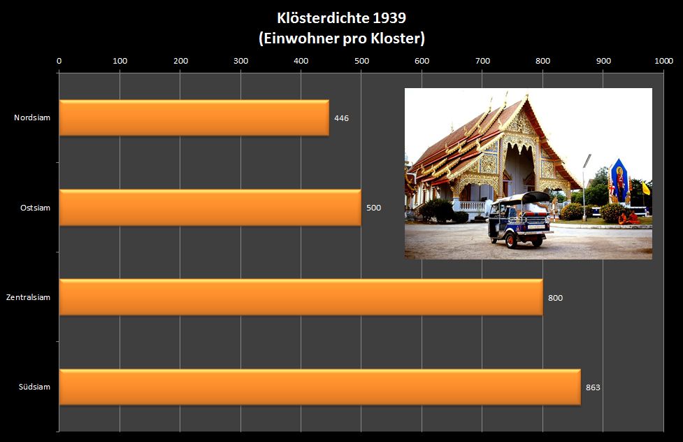 Dichte buddhistischer Klöster. In ganz Siam gibt es 18.000 buddhistische Klöster.
