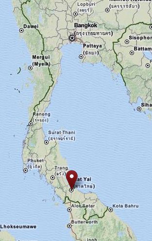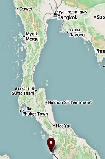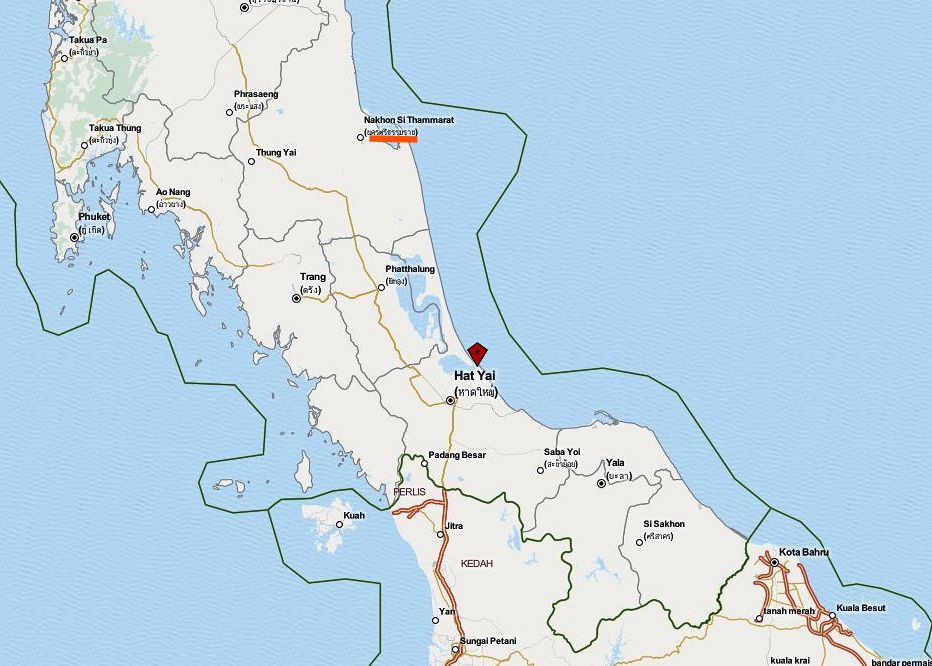 Abb.: Lage von Nakhon Si Thammarat (นครศรีธรรมราช) und Singora (Songkhla - สงขลา)