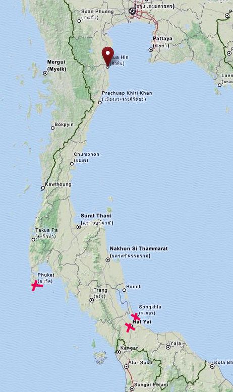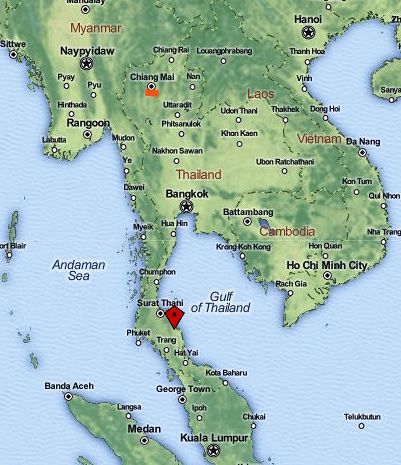 Lage von Chiang Mai (เชียงใหม่) und Nakhon Si Thammarat (นครศรีธรรมราช)