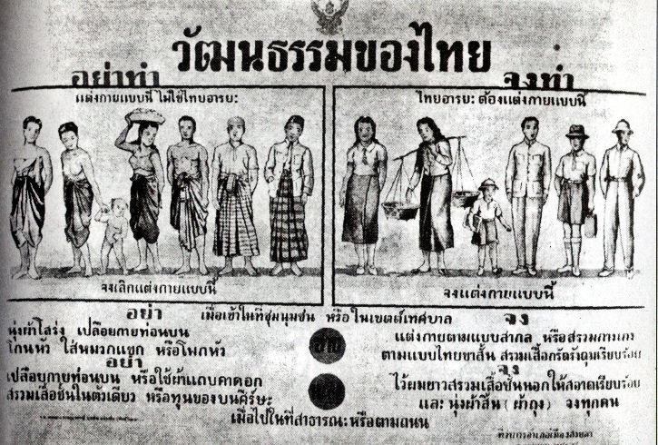 "In a press conference on January 20, 1940, the Premier, Luang Pibul, was asked if Thai should refrain from marriage with aliens in order to keep the racial blood pure. The Premier answered that only two classes of civil officials were forbidden by law to marry aliens, and those were employees in the Ministry of Foreign Affairs and in the Ministry of War, because both departments dealt with foreign affairs. Other civil officials could marry whom they pleased, yet if they did refrain from marrying aliens it would be better for the nation. This advice held good for the average citizen who lived in close proximity to the Chinese. Thai should marry Thai because this makes for greater happiness, and because Thai girls are more charming and cultured than ever before, and certainly as well dressed and attractive as aliens." [Quelle: Landon, Kenneth Perry <1903 - 1993>: The Chinese in Thailand. -- Londondon : Oxford UP, 1941. -- 310 S. ; 23 cm. -- (International Research Series of the Institute of Pacific Relations). -- S. 64f.]