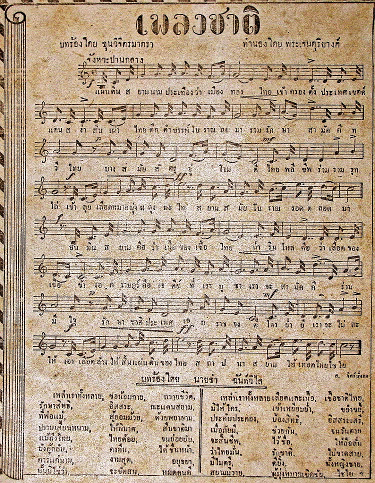 für Sicherheit, Freiheit und Fortschritt – Sieg!Die thailändische Nationalhymne Phleng Chat Thai – nicht zu verwechseln mit der thailändischen Königshymne Phleng San Soen Phra Barami (เพลงสรรเสริญพระบารมี), die vor Filmbeginn in den Kinos gespielt wird – wurde von Peter Feith, einem der drei Söhne des aus Trier stammenden Jakob Feith komponiert.