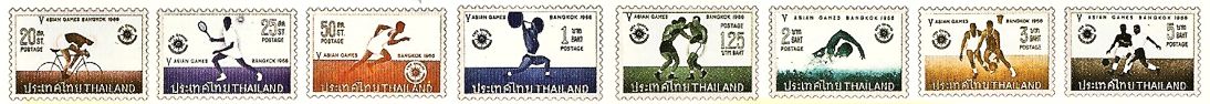 5th Asian Games (เอเชียนเกมส์) in Bangkok. Es nehmen 18 Länder mit insgesamt 1895 Sportlern teil. Thailand nimmt mit 253 Sportlern teil. Thailand gewinnt 12 mal Gold, 14 mal Silber und 11 mal Bronze.