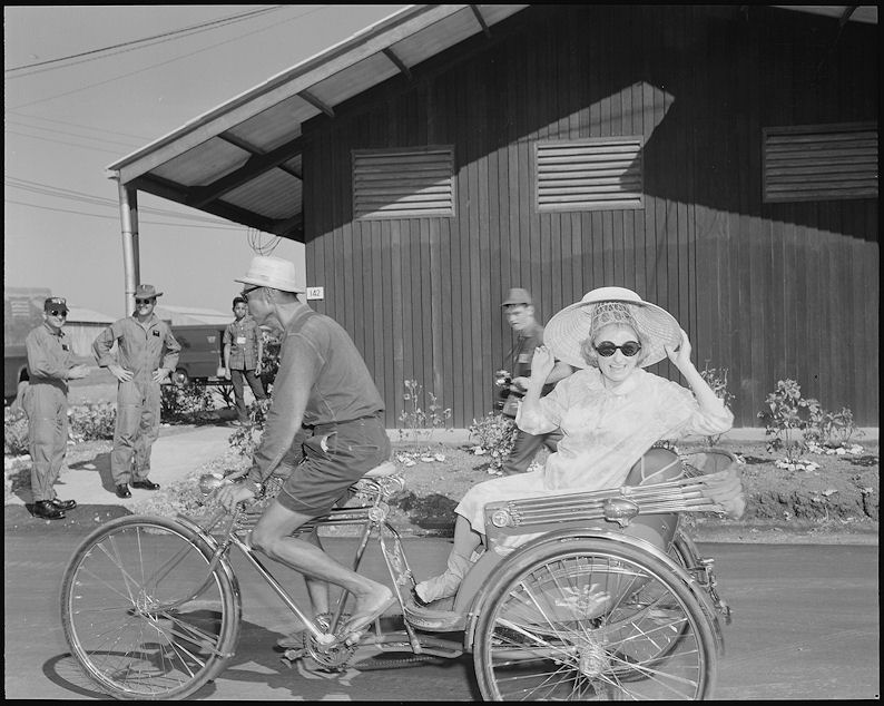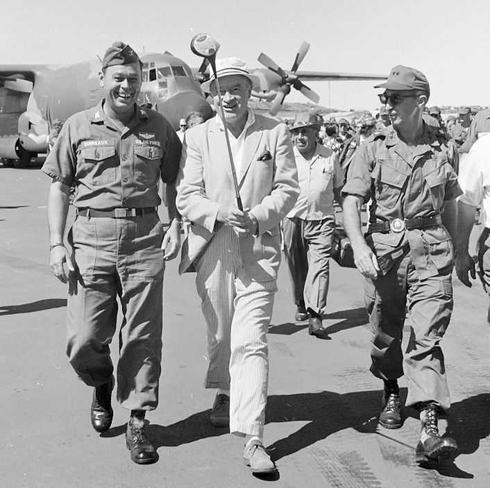 Abb.: "Comedienne Phyllis Diller smiles for the camera as the Bob Hope Christmas show arrives at Korat (โคราช) Air Base, Thailand, to entertain American servicemen."