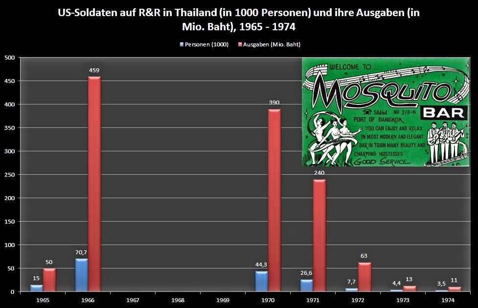 Abb.: US-Truppenpräsenz in Thailand 1966 - 1974: Thai und US Personal (in Tausend)