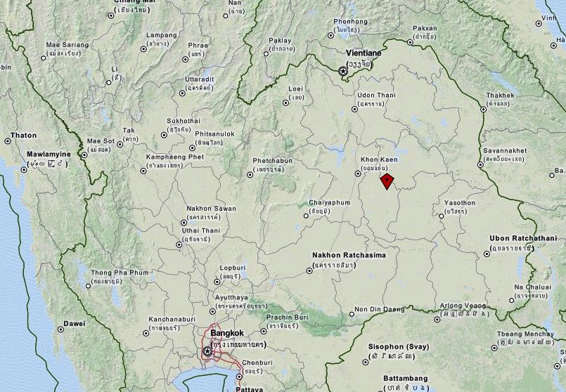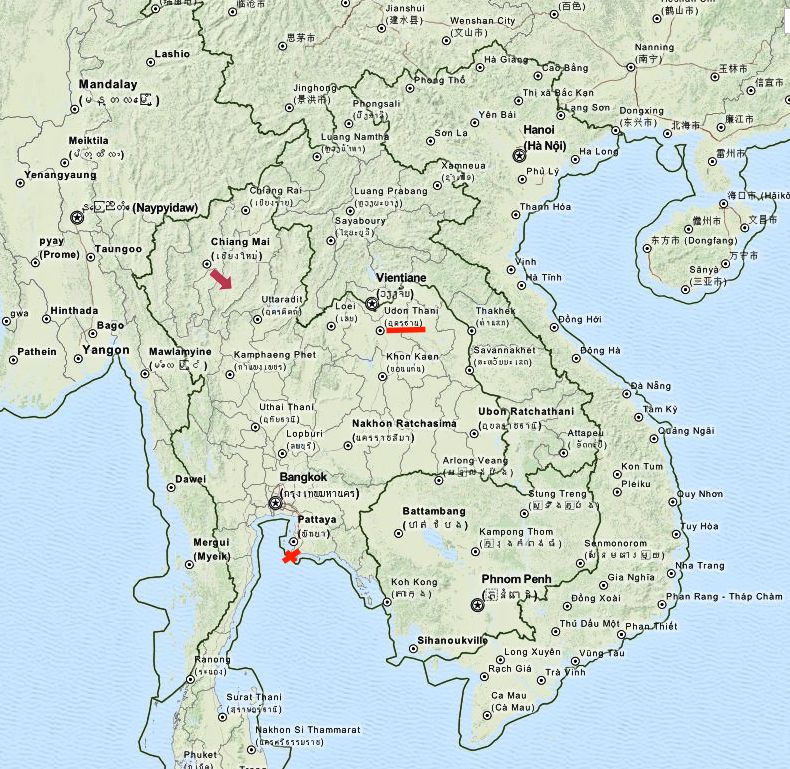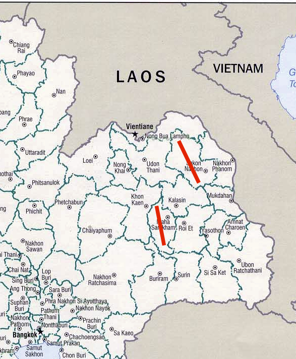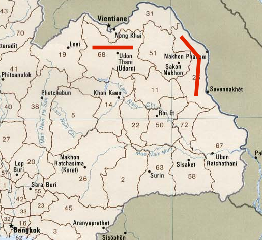 Abb.: Lage der Provinzen Nakhon Phanom [นครพนม] und Udon Thani [อุดรธานี]