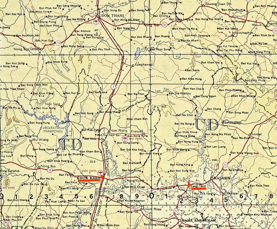 Police overran two insurgency hideouts near Udorn [อุดรธานี]; thirty Communist documents were seized along with three hundred pounds of food, and packages of clothing, In both instances the Communists retreated, leaving trails of blood."