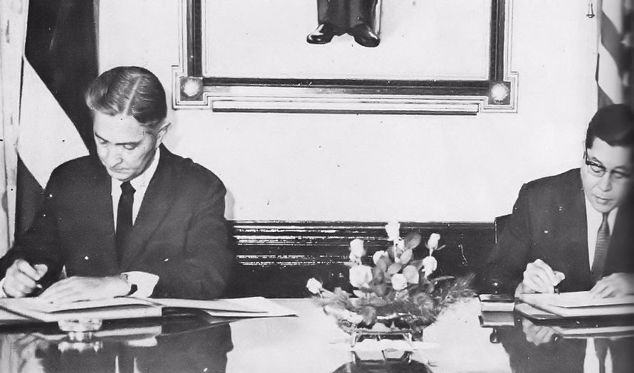 Abb.: Unterzeichnung des Abkommens durch Thanat Khoman und Graham Anderson Martin, 1966-12-22