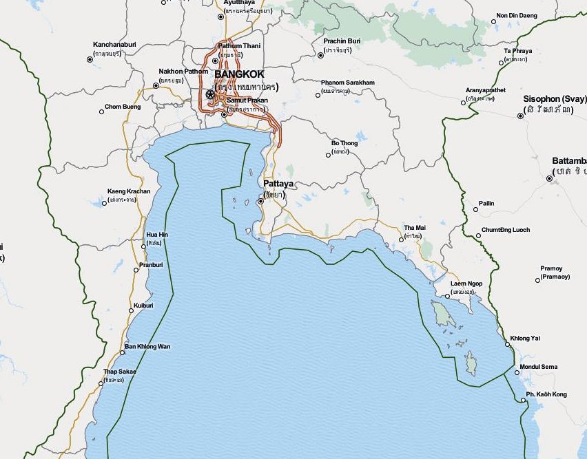 Abb.: Lage von Thonburi (ธนบุรี) und Pak Tho (ปากท่อ)