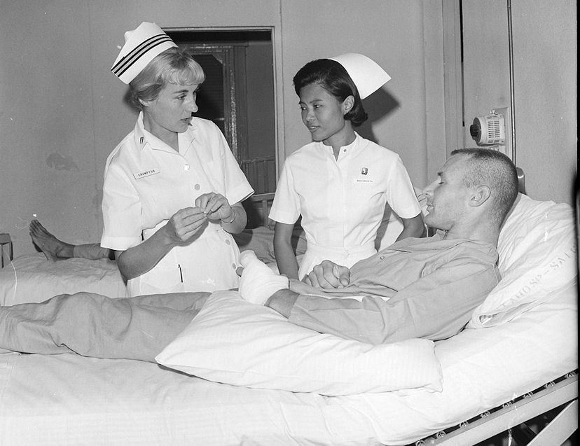 Abb.: Durch Vietcong-Bombe in Saigon Verletzter, Februar 1966