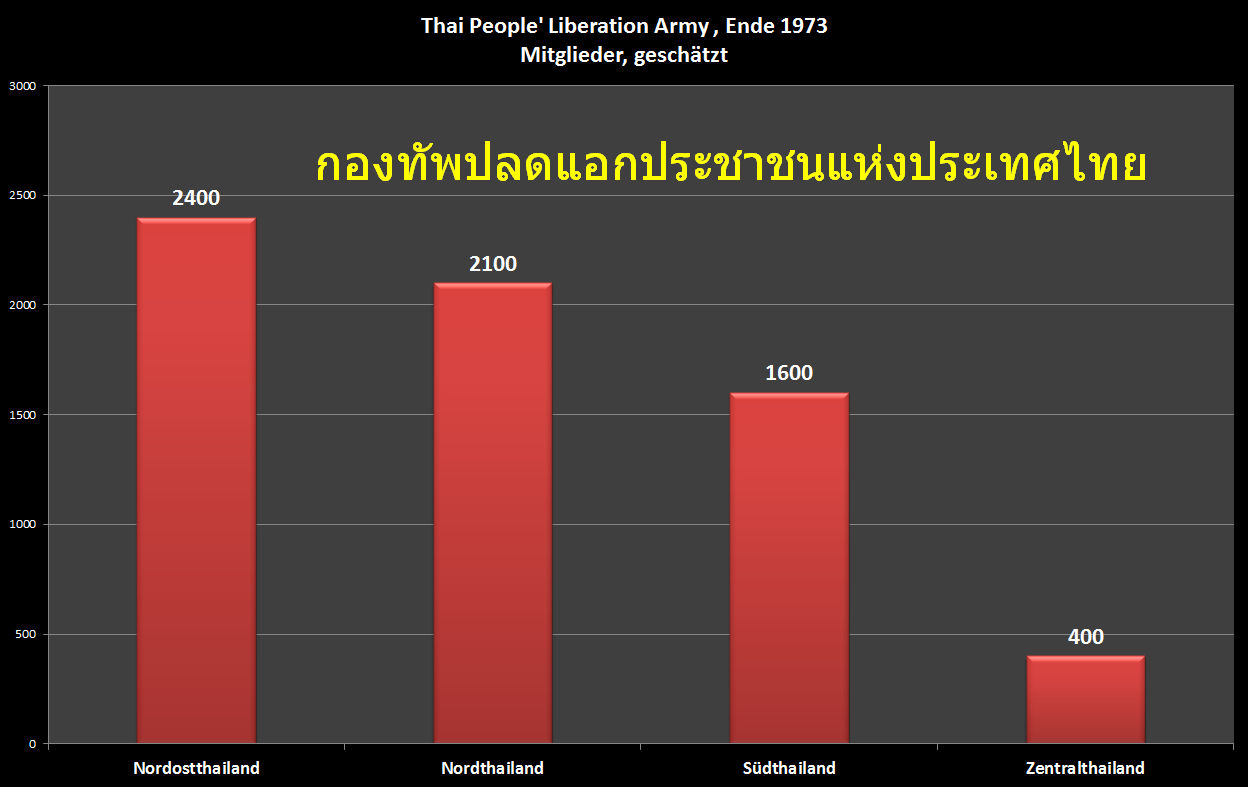 Geschätzte Mannschaftsstärke der kommunistischen Thai People's Liberation Army (กองทัพปลดแอกประชาชนแห่งประเทศไทย): Total 6.500