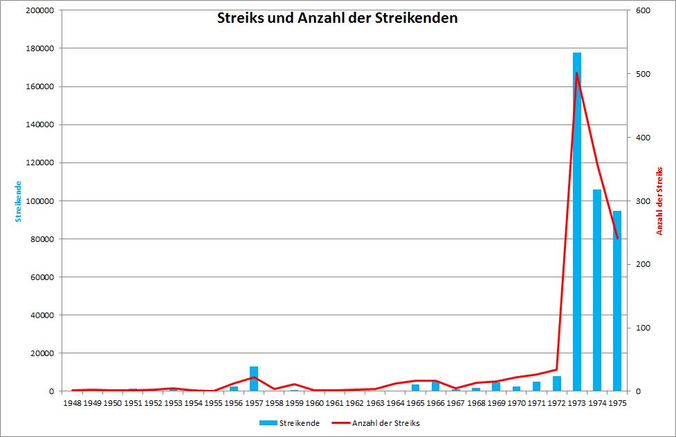 Abb.: Streikende und Anzahl der Streikenden 1948 - 1975