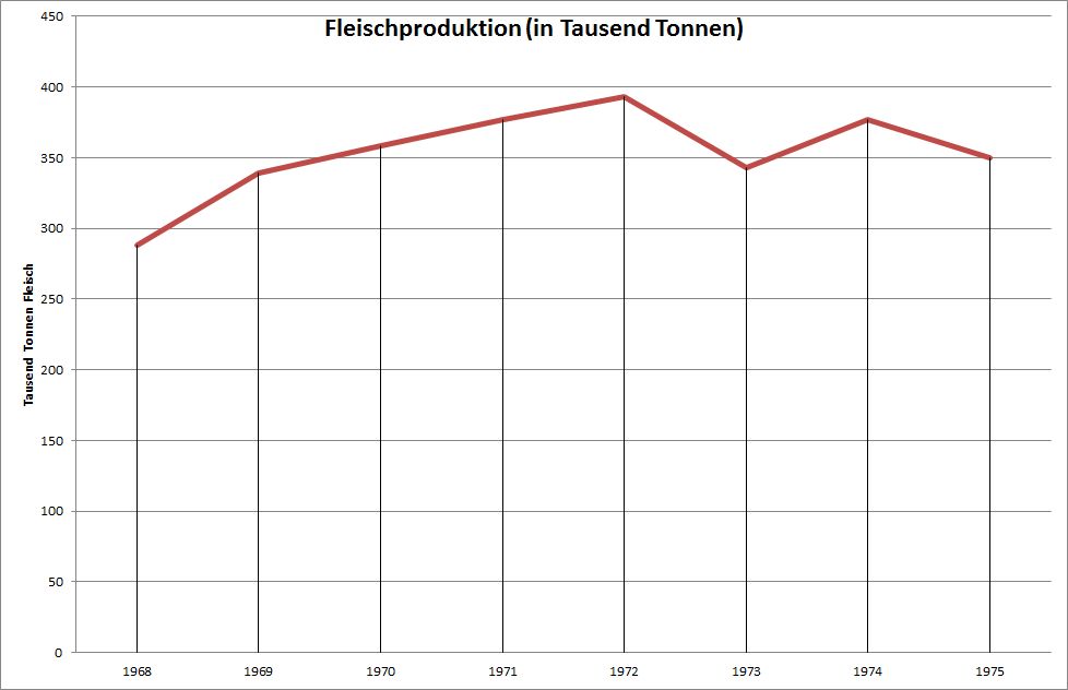 Abb.: Fleischproduktion (in Tausend Tonnen) 1968 - 1975