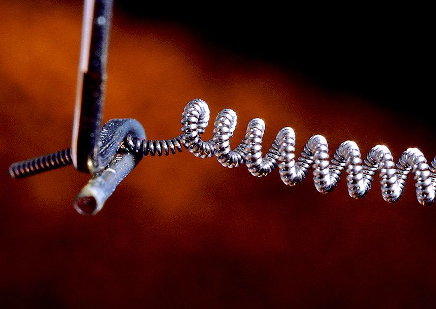 Abb.: Wichtigste Anwendung von Wolfram (W): Glühwedel einer Glühbirne (stark vergrößert)