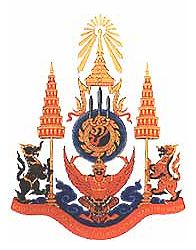 "The Royal Garuda signifying the State, meaning the Government and the People, respectfully supporting the discus and the ancient sword, symbolizing the Chakri Dynasty and His Majesty King Bhumibol Adulyadej. The clockwise discus signifies the power of righteousness. The Royal Crown with golden rays, flanked by royal umbrellas and royal belongings, signifies the power of the monarch. The mythological lion symbolizes the civilian side, and the mythological half elephant-half lion figure symbolizes the military side. They hold the royal umbrellas and the royal belongings, signifying the two branches of officials that undertake state affairs in the name of His Majesty the King." [Quelle: http://www.rama9art.org/artisan/emblem/rce2.html. -- Zugriff am 2013-01-14]