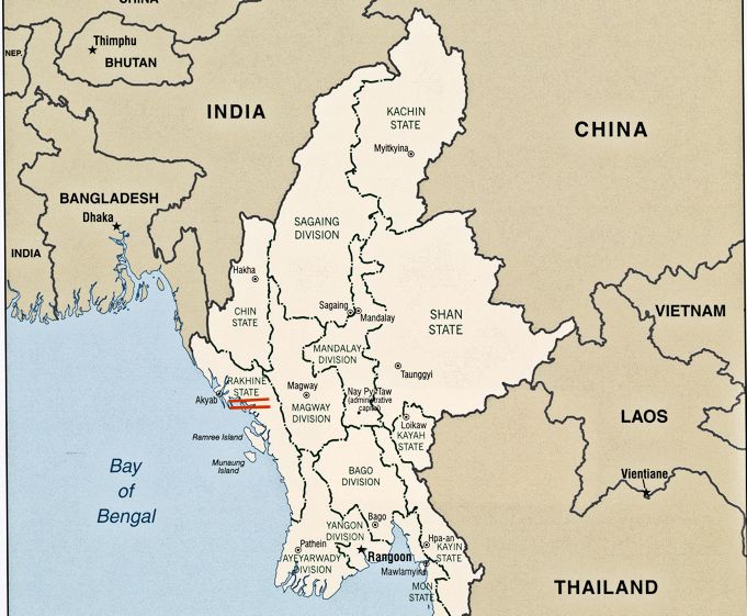 Schätzungsweise 70.000 bis 90.000 Rohingya (রোহিঙ্গা) sind in Flüchtlingslagern Myanmars. Myanmar bietet dem UN-Hochkommisar für Flüchtlinge (UNHCR) an, die muslimischen Rohingya, die in Myanmar als illegale Einwanderer gelten, in aufnahmewillige Drittländer zu deportieren. Der Hochkommissar lehnt dies ab, da es sich bei den vertrieben Rohingya um Binnenflüchtlinge handelt.