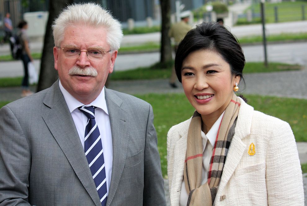 Ministerpräsidentin Yingluck Shinawatra (ยิ่งลักษณ์ ชินวัตร, 1962 - ) besucht offiziell die Bundesrepublik Deutschland. Sie besucht auch den Freistaat Bayern (รัฐบาวาเรีย).