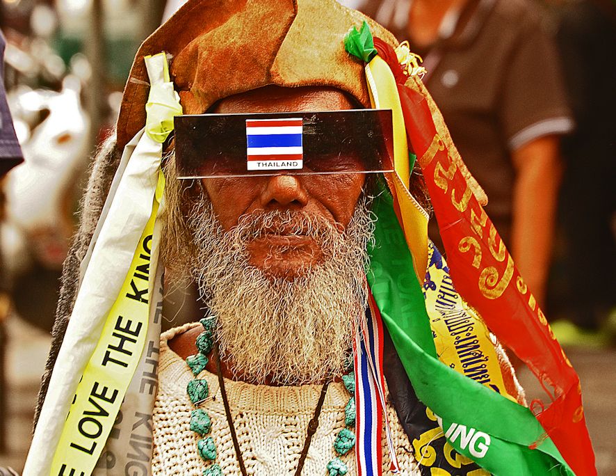 Teile der Protestierenden werfen den Shinawatras (ชินวัตร) vor, die Monarchie abschaffen zu wollen