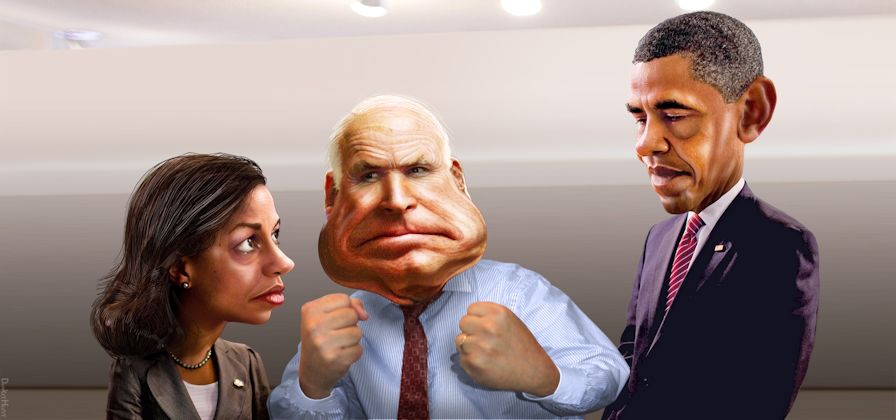 Abb.: Susan Elizabeth Rice mit US-Senator John Sidney McCain III (1936 - ) und US-Präsident Barack Hussein Obama II (1961 - )