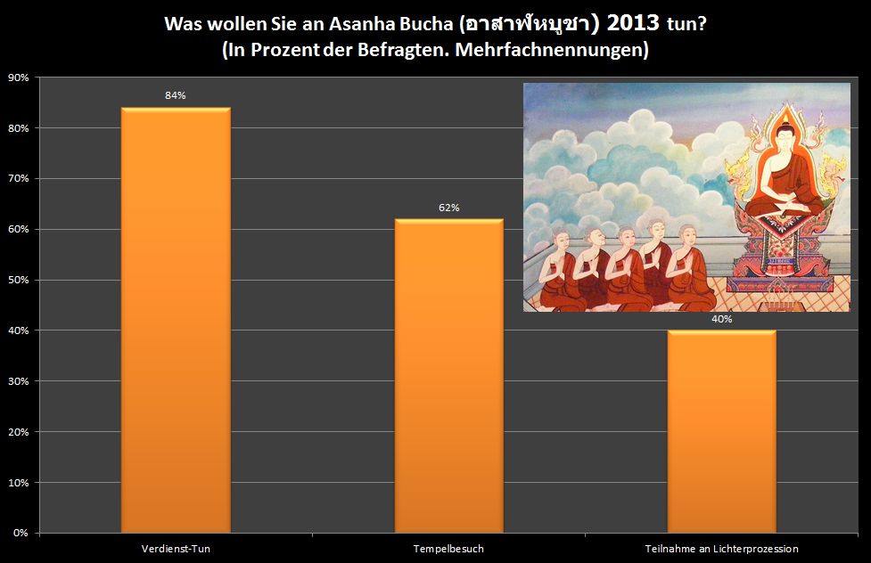 Abb.: Was wollen Sie an Asanha Bucha (อาสาฬหบูชา) 2013 tun? (In Prozent der Befragten. Mehrfachnennungen)