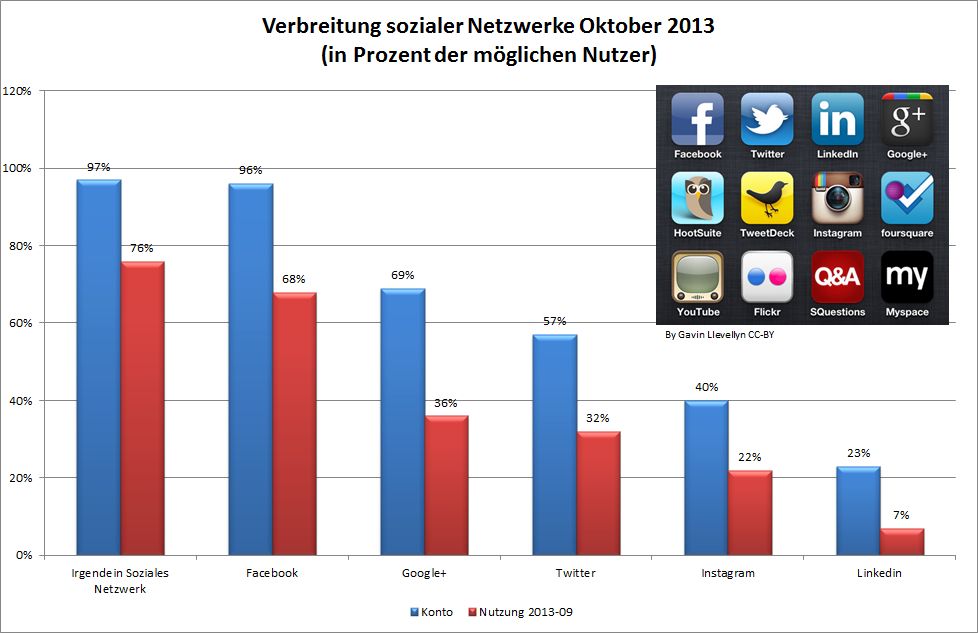 Abb.: Verbreitung sozialer Netzwerke Oktober 2013 (in Prozent möglicher Nutzer)