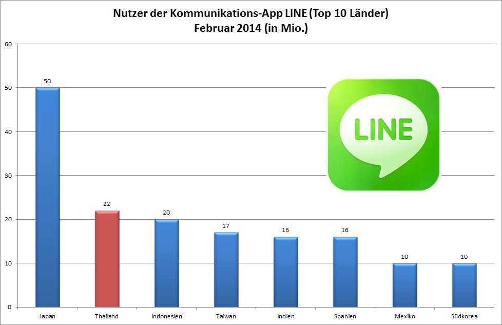 [Datenquelle: http://www.statista.com/statistics/250927/number-of-registered-line-app-users-in-selected-countries/. -- Zugriff am 2014-03-20. -- Fair use]