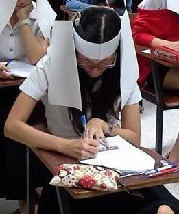 Studierende der an der Agro-industry Faculty der Kasetsart University (มหาวิทยาลัยเกษตรศาสตร์) müssen beim schriftlichen Examen Scheuklappen tragen, um nicht abschreiben zu können. Aufgrund von Protesten verspricht die Universität, die Scheuklappen in Zukunft nicht mehr zu benutzen.